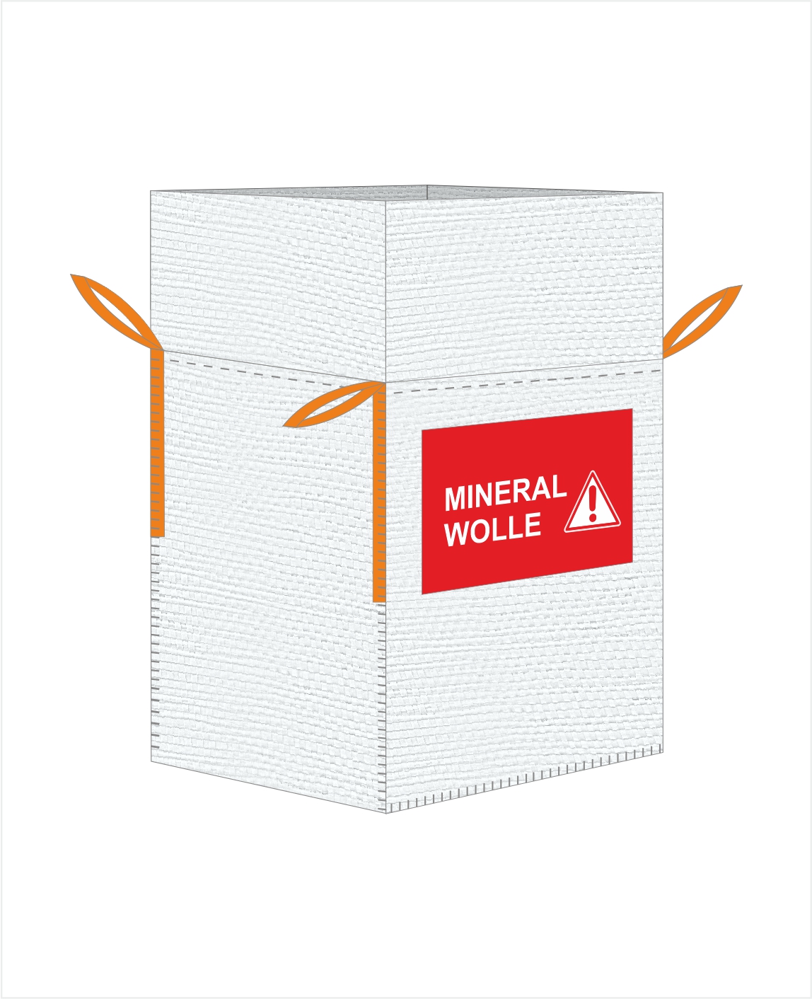 Der BigBag MIRAWO 140 x 140 x 150 cm ist beschichtet und mit einem Füllvolumen von 2,9 m³ der größte Mineralwolle/KMF BigBag auf dem Markt. Die Traglast beträgt 250 kg. Die Mineralwolle kann aufgewickelt werden und passt perfekt in den BigBag. Damit ist eine höchstmögliche Sicherheit gewährleistet, da die Fasern nur geringfügig freigesetzt werden. Alle Mineralwollsäcke werden mit dem Warndruck "Mineralwolle - Achtung: Inhalt kann krebserzeugende Faserstoffe freisetzen!" versehen. Der BigBag MIRAWO 140 x 140 x 150 cm hat 4 Hebeschlaufen und ist damit leicht zu verladen.